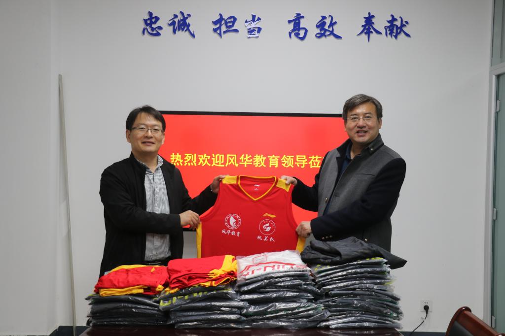 在学校建校69周年之际,行政管理2000校友,济南风华教育培训学校创始人王志刚机关工会捐赠运动服10月7日下午,捐赠仪式在行政楼109会议室举行。机关党委书记李双立、机关工会主席卜文峰和工会委员代表出席仪式。卜文峰主持捐赠仪式并代表工会接受捐赠
