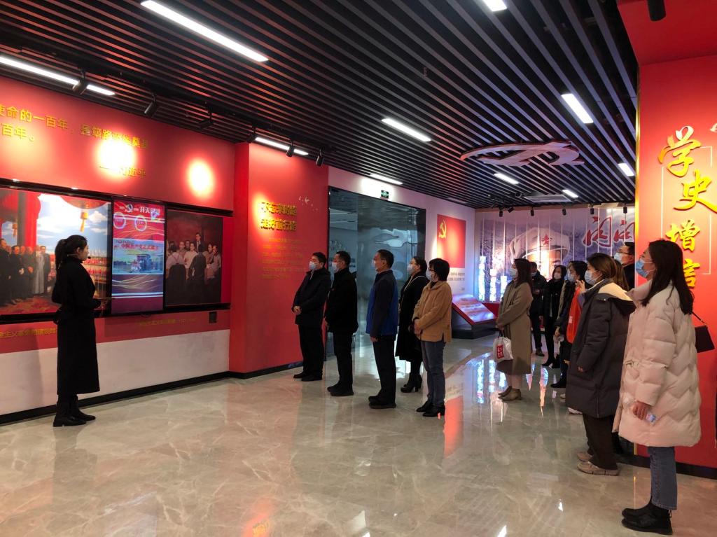 全体师生先后参观了时代先锋党史教育展厅、党课直播演练室、全景沉浸式体验课堂、XR拓展现实技术演播室。在5G高新视频党史教育展厅里,大家跟随讲解员,围绕学史明理、学史增信、学史崇德、学史力行四个主题,认真学习了中国共产党百年奋斗历程和重大成就。从马克思主义在中国开始传播到习近平新时代中国特色社会主义思想,从反帝反封建伟大斗争到开创中国特色社会主义新时代,从无数抛头颅洒热血的革命先烈到天坑开路人、新时代楷模,从“半条棉被”的鱼水之情到“我为群众办事”的真抓实干,充分证明我们党的一百年,是矢志践行初心使命的一百年,是筚路蓝缕奠基立业的一百年,是创造辉煌开辟未来的一百年,党的历史是最生动、最有说服力的教科书。